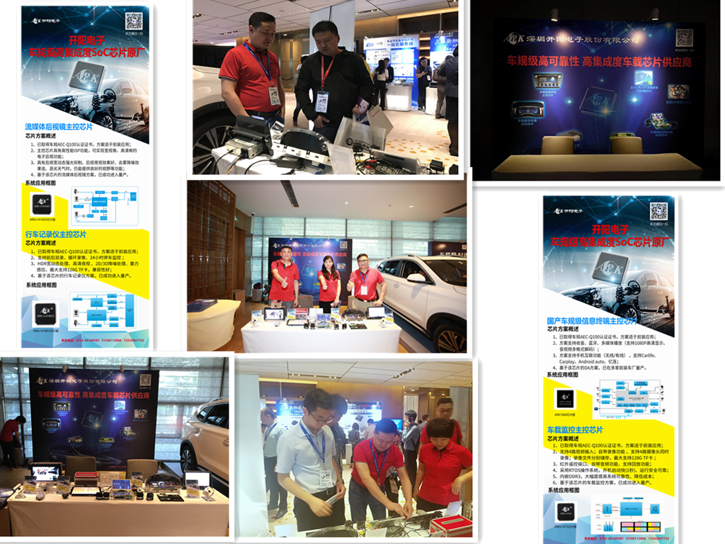 會場外展廳,開陽電子展示了自主研發的車載信息終端主控芯片和樣機、wifi/4G/隱藏式行車記錄儀主控芯片和樣機、流媒體后視鏡主控芯片和樣機、4路監控主控芯片和樣機、數字儀表主控芯片和樣機等,引起了車企、方案商、Tier1廠、投資機構等的廣泛關注。